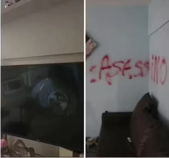 O apartamento de Cléber Rosa de Oliveira, de 49 anos, que confessou o assassinato da corretora Daiane Alves de Souza, de 43, em um condomínio de Caldas Novas (GO), foi invadido e depredado nesta terça-feira. Imagens gravadas no local mostram danos tanto nas áreas comuns do prédio quanto no interior do imóvel, que foi pichado com a palavra “assassino”. Procurada, a Polícia Civil não informou se o responsável pela depredação já foi identificado.