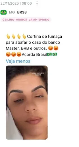 Em geral, as mensagens contestam a decisão do ministro Alexandre de Moraes, do Supremo Tribunal Federal (STF), reforçando a narrativa de que se trata de uma “perseguição” contra Bolsonaro. Em alguns grupos, surgem ainda teorias segundo as quais a prisão preventiva serviria como uma cortina de fumaça para encobrir a prisão do dono do Banco Master, Daniel Vorcaro, ocorrida na última terça-feira (18). Essas mensagens citam supostas ligações políticas do empresário, que incluiriam ex-ministros de Bolsonaro e atuais ministros do presidente Luiz Inácio Lula da Silva (PT).
