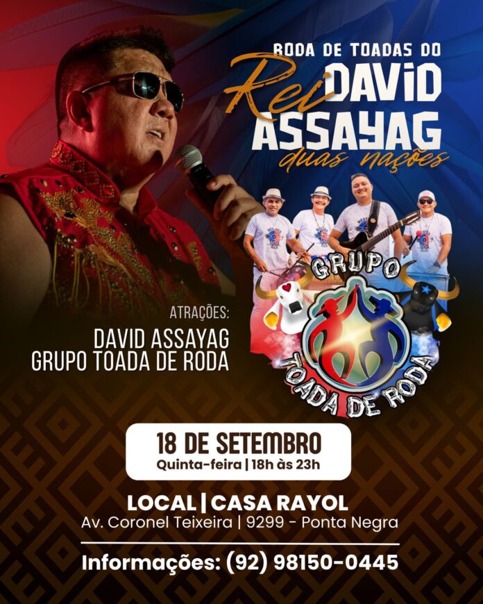 No próximo dia 18 de setembro, a partir das 18h, a casa Rayol (Av. Coronel Teixeira, 9299 – Ponta Negra) será palco da 5ª edição da Roda de Toadas, comandada pelo ícone da música amazonense David Assayag.