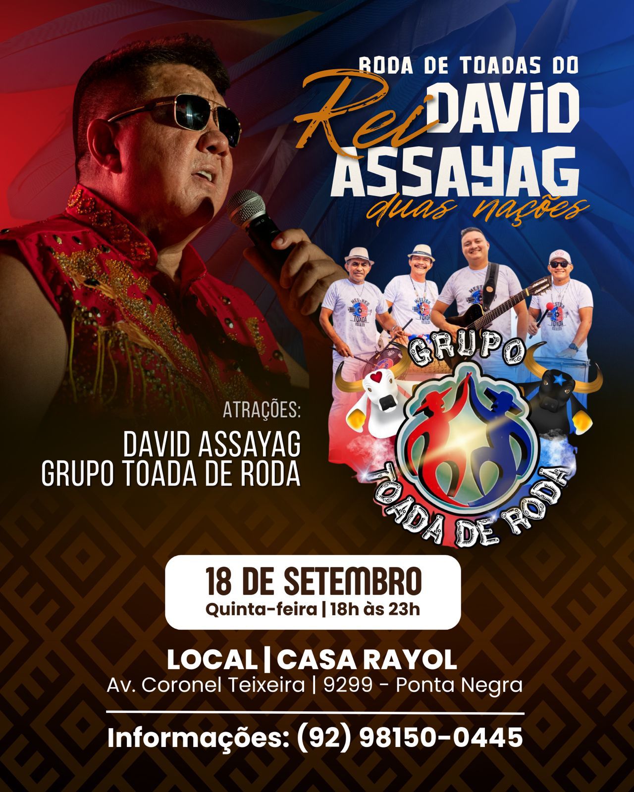 Em seguida, o público será conduzido por um espetáculo único com David Assayag e Banda, revivendo grandes sucessos das duas Nações e celebrando a cultura do Festival de Parintins em um show memorável.