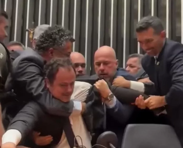 Mais cedo, Glauber Braga foi retirado à força das dependências da Câmara Federal e agredido pela Polícia Legislativa, acionada pelo presidente da Casa, Hugo Motta (Republicanos-PB).
