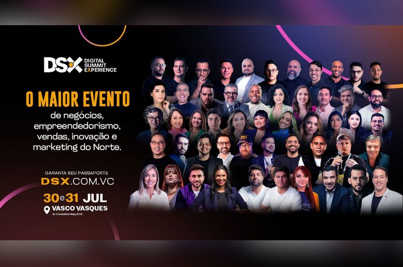 Nos dias 30 e 31 de julho, o Centro de Convenções Vasco Vasques, em Manaus, será palco do DSX 2025 – Digital Summit Experience, o maior evento de marketing, vendas, inovação e negócios do Norte do Brasil.