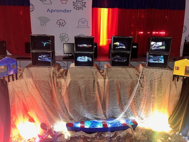 Cada estudante escolheu um ser vivo da biodiversidade amazônica para pesquisar e apresentar. Com apoio de aplicativos de modelagem 3D e Inteligência Artificial, produziram vídeos que deram vida a aves, peixes e outros animais da floresta, formando um aquário digital e uma exposição que encantou o público presente.