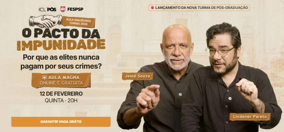 É esse padrão que será aprofundado no Pacto da Impunidade, aula magna aberta do ICL, que discute como poder econômico, proteção política e justiça seletiva operam para garantir que grandes crimes atravessem o tempo sem punição.