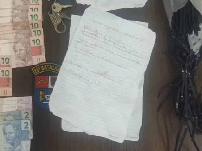 Durante a operação, uma mochila pertencente ao suspeito foi apreendida. No interior da mochila, foram encontrados itens como cintas plásticas, fitas adesivas, ferramentas, o aparelho celular de uma das vítimas e uma quantia de R$ 2.700 em espécie.