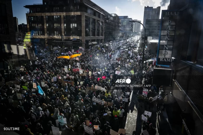 Em Minneapolis, onde as temperaturas chegaram a -23°C nesta sexta-feira, os manifestantes,