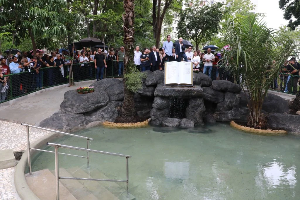 Segundo a denúncia, a obra, projetada e executada pela Secretaria Municipal de Conservação (Seconserva), viola frontalmente o Estado Laico. O espaço dispõe de uma cascata d’água, um local para batismo por imersão e uma bíblia cenográfica de resina, caracterizando-se como um equipamento destinado exclusivamente a liturgias de fé cristã.
