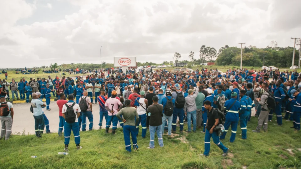 A obra da BYD em Camaçari está parada desde a semana passada por denúncias de condições inadequadas de trabalho. A mobilização deve continuar nesta terça-feira (9), com expectativa de ampliação dos protestos para denunciar o que os operários classificam como ações autoritárias da empresa contra trabalhadores envolvidos na luta.