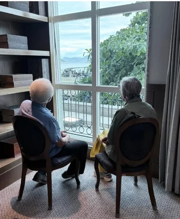 A foto do Paulinho da Viola (83 anos) e Caetano Veloso (83 anos) instantes antes do “Ato Musical 2: O retorno, no Rio” é de Cecília Rabello (@ceciliarabello).