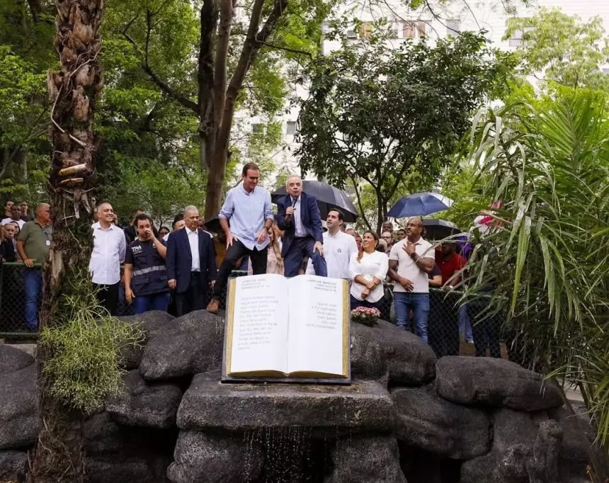 “Inauguramos hoje o primeiro batistério público do Rio, aqui, no Jardim do Méier, lugar onde nasceu a Igreja Universal. Próximo ao coreto, onde o bispo Edir Macedo pregava para pequenos grupos de cariocas há 40 anos, agora há um espaço público destinado à realização de cerimônias de batismo por imersão”, afirmou Paes.