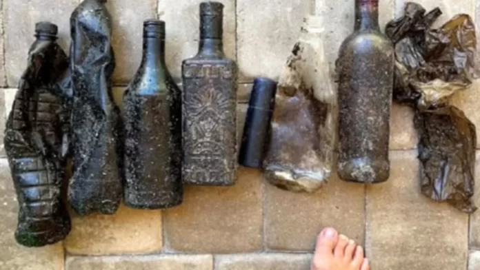 Na sequência, de maio a setembro de 2020, uma grande quantidade de garrafas de vidro e plástico sujas de petróleo chegaram diariamente a Palm Beach. Com rótulos com inscrições em português e espanhol, além de inglês, o material chamou a atenção de uma ONG que trabalha na limpeza das praias da região, a Friends of Palm Beach, que divulgou as imagens nas redes sociais.