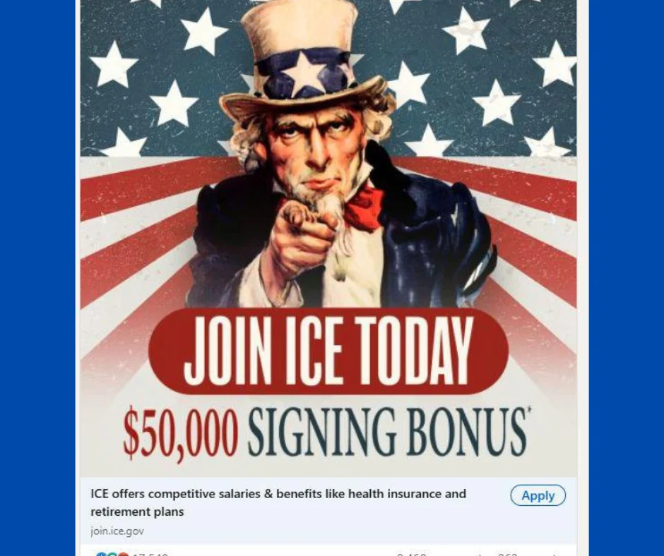 Outro caminho foi o pagamento de US$ 8 milhões para que influenciadores convencessem os mais jovens a optar por um trabalho com o ICE.