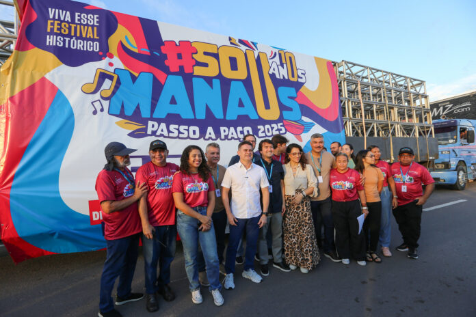 A partir desta segunda-feira, 11/8, Manaus começa a viver o clima do maior festival de artes integradas da cidade. O prefeito David Almeida, acompanhado pelo diretor-presidente da Fundação Municipal de Cultura, Turismo e Eventos (ManausCult), Jender Lobato, anunciou o início da montagem da estrutura do “#Sou Manaus Passo a Paço 2025”, que este ano ocupará 63 mil metros quadrados do centro histórico, com 17 palcos e mais de 20 atrações nacionais, além de 2 mil artistas regionais.