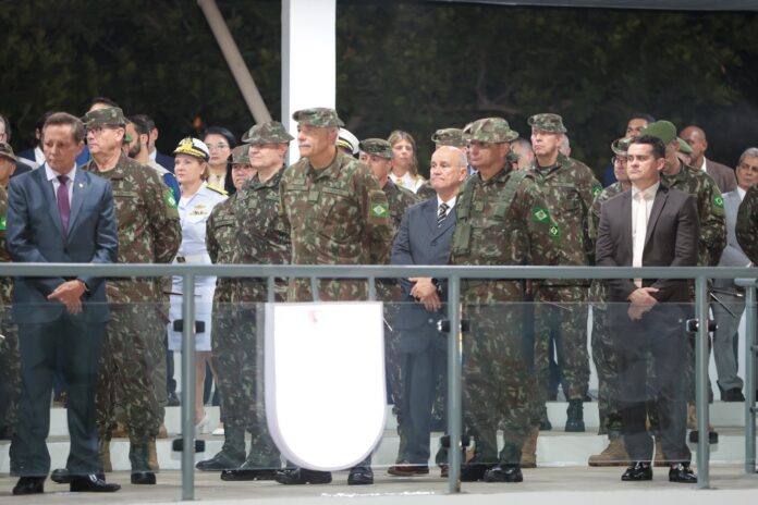 O prefeito de Manaus, David Almeida, participou, na noite desta terça-feira, 19/8, da solenidade de passagem de comando do Comando Militar da Amazônia (CMA), realizada no Campo de Formatura da sede da instituição, no bairro Ponta Negra, zona Oeste da capital.