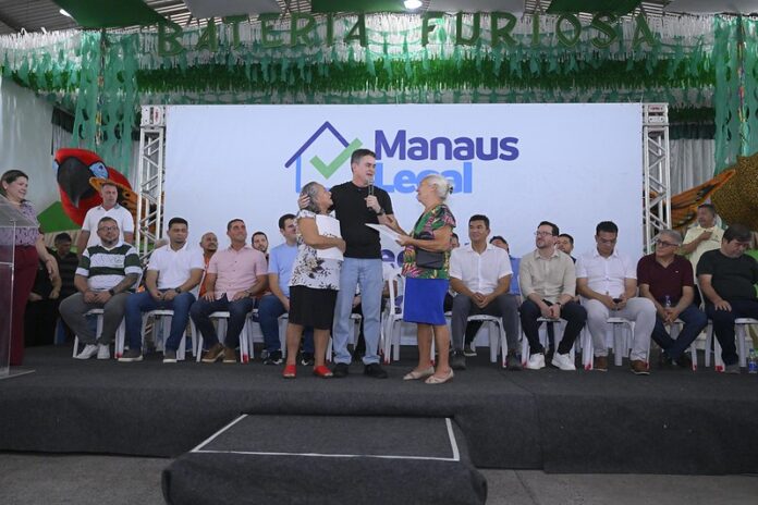 O prefeito de Manaus, David Almeida, realizou, nesta terça-feira, 16/9, um dos atos mais simbólicos de sua gestão: a entrega de 600 registros definitivos de imóveis a famílias do bairro Morro da Liberdade, zona Sul da capital. A cerimônia, realizada na quadra da escola de samba Reino Unido da Liberdade, marcou um momento histórico para a comunidade, que aguardava pelo direito pleno à propriedade há 133 anos, e fez com que a atual gestão ultrapassasse a marca de 12 mil registros entregues desde 2023.