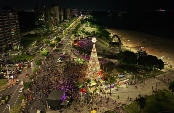 Com 32 metros de altura, a árvore natalina instalada ao lado do anfiteatro se tornou um dos principais símbolos da temporada, iluminando toda a orla da Ponta Negra. Além dela, o espaço recebeu ornatos temáticos, o trenó do Papai Noel, a Vila do Papai Noel, um túnel iluminado e uma árvore digital em LED na rotatória, transformando o local em um cenário encantado e propício à convivência em família.