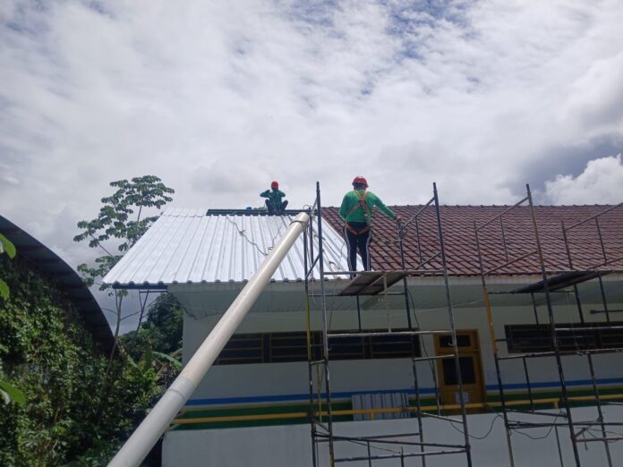 Com a conclusão prevista para o final deste mês, a Prefeitura de Manaus está realizando um grande trabalho de troca de telhados em 70 unidades de ensino da Secretaria Municipal de Educação (Semed). A ação visa a substituição dos telhados de telhas de barros e de amianto por material metálico termoacústico, que proporciona isolamento térmico, reduzindo o calor interno, e isolamento acústico, abafando ruídos externos, como a chuva.