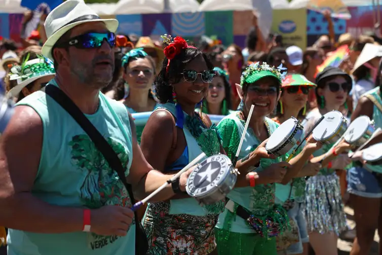 O Bloco Quizomba arrastou uma multidão nesta terça-feira (17) de carnaval no Aterro do Flamengo, no Rio de Janeiro, com os temas Verde que te Quero Ver e o combate ao feminicídio.