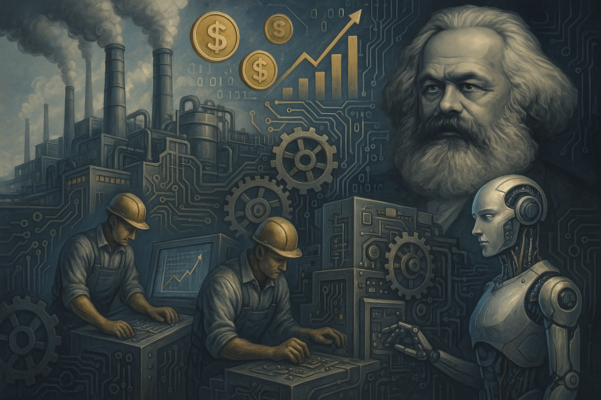 Mas vamos ao que interessa: o que de fato está em jogo com essa tal de Inteligência Artificial? Porque, convenhamos, por trás de toda essa algazarra tecnológica sempre há algo mais profundo em movimento. E esse algo, caras leitoras, tem nome e sobrenome: tempo livre, mais-valia, exploração e produtivismo. Ou seja, as mesmas questões que Marx já mastigava no século XIX e que continuam tão atuais quanto um prompt de IA.