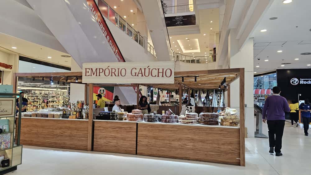 Instalado no hall de entrada, o ‘Empório Gaúcho’ reúne uma diversidade de produtos tradicionais, como queijos, salames, sucos, doces e artesanato